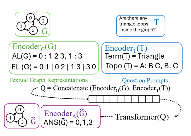 - Encoder_G(G) → encodes graph topology (neighbor-based (Adjacency List) or edge-based (Edge List))