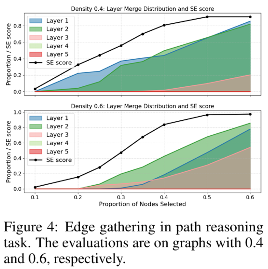 Decoder-only Transformers learn graph structures by token merging — they compress related information directly. For path reasoning, what gets merged are edges. For pattern extraction, it’s node groups forming particular shapes
